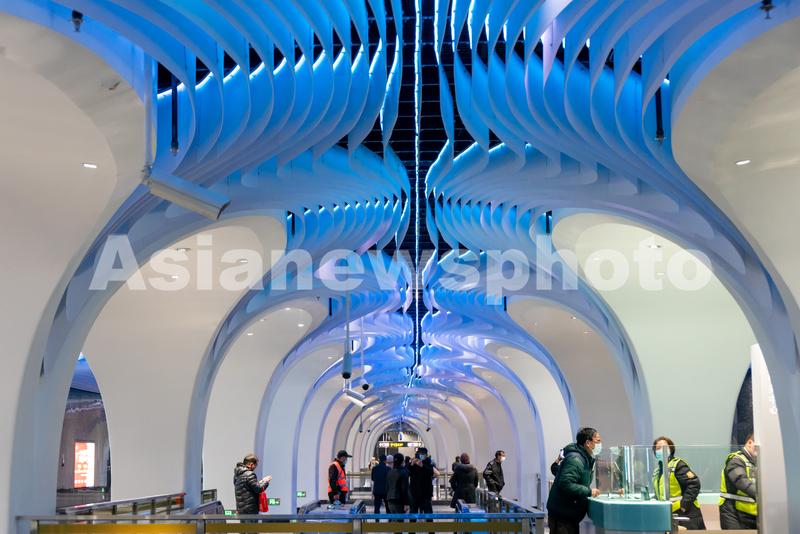 图片说明:2021年12月30日,上海,地铁14号线当天(12月30日)开通初期运营,其中豫园站室内设计相当亮眼,吸引众多市民前来打卡。