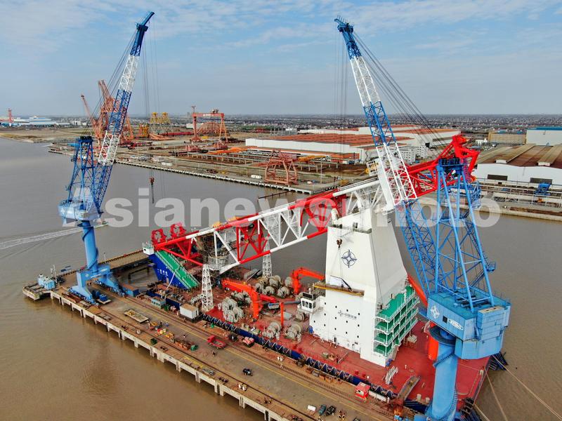 2022年1月1日在振华重工启东海洋工程拍摄的世界最大打桩船。