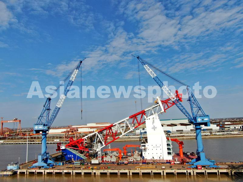 2022年1月1日在振华重工启东海洋工程拍摄的世界最大打桩船。