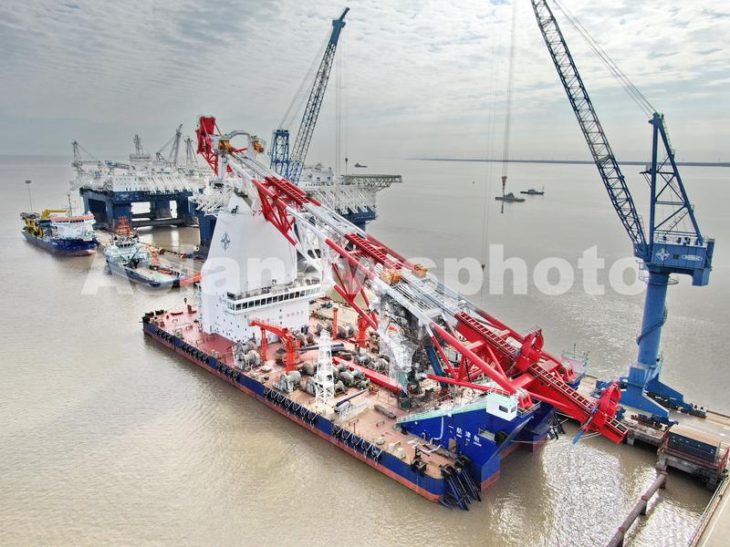 2022年1月1日在振华重工启东海洋工程拍摄的世界最大打桩船。