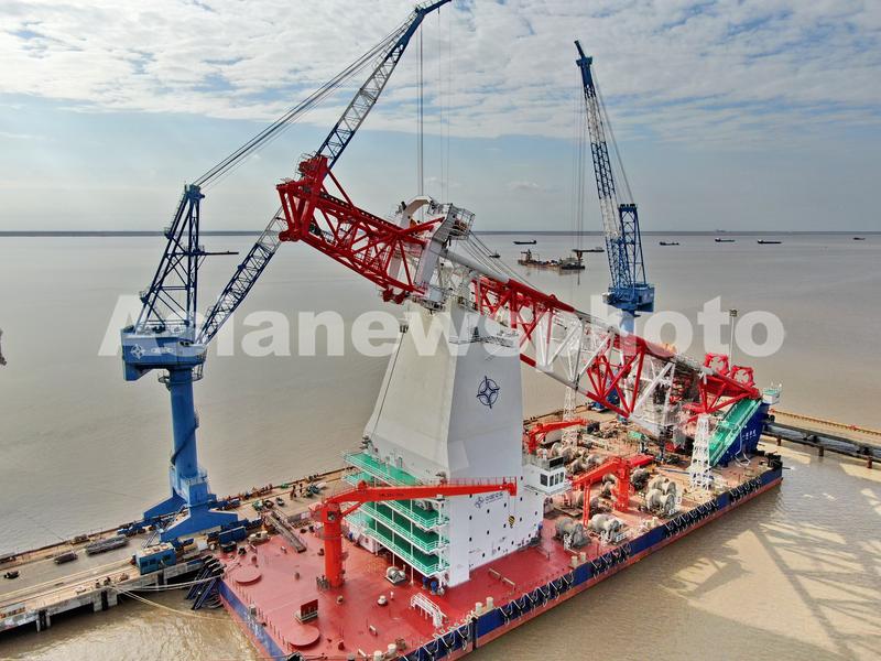 2022年1月1日在振华重工启东海洋工程拍摄的世界最大打桩船。