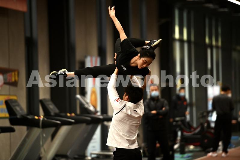 2022年1月5日,北京首钢园区花样滑冰训练馆,花样滑冰国家队队员训练备战即将举行的2022北京冬奥会。