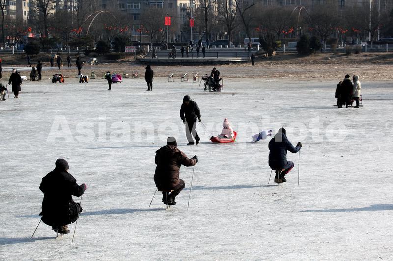 图片说明:2022年1月5日,沈阳市劳动公园人工湖上,市民进行冰上运动。
