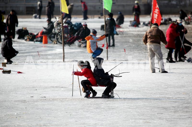 图片说明:2022年1月5日,沈阳市劳动公园人工湖上,市民进行冰上运动。