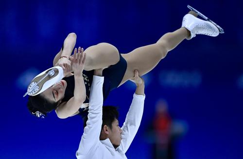 2022年1月5日,北京首钢园区花样滑冰训练馆,花样滑冰国家队队员训练备战即将举行的2022北京冬奥会。