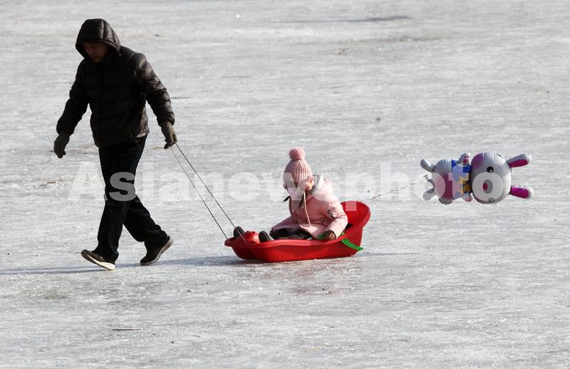 图片说明:2022年1月5日,沈阳市劳动公园人工湖上,市民进行冰上运动。