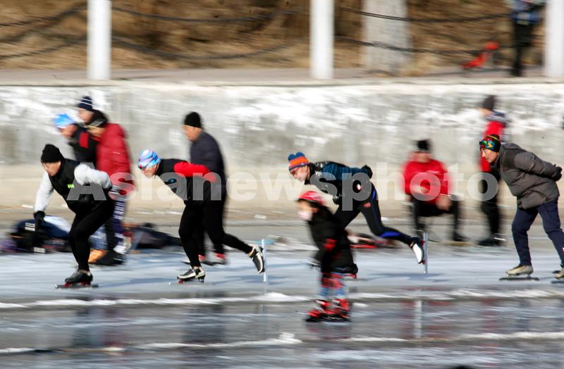 图片说明:2022年1月5日,沈阳市劳动公园人工湖上,市民进行冰上运动。