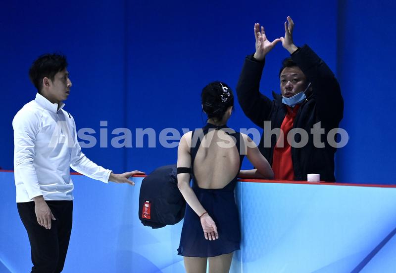 2022年1月5日,北京首钢园区花样滑冰训练馆,花样滑冰国家队队员训练备战即将举行的2022北京冬奥会。