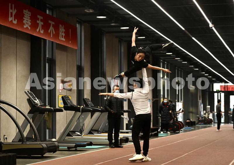 2022年1月5日,北京首钢园区花样滑冰训练馆,花样滑冰国家队队员训练备战即将举行的2022北京冬奥会。