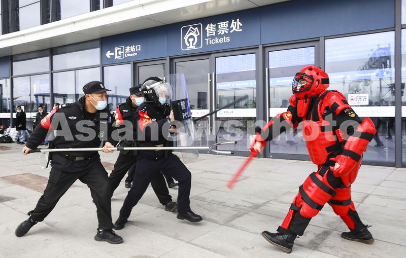 江苏淮安:高铁站开展防恐防暴应急演练 查看组图