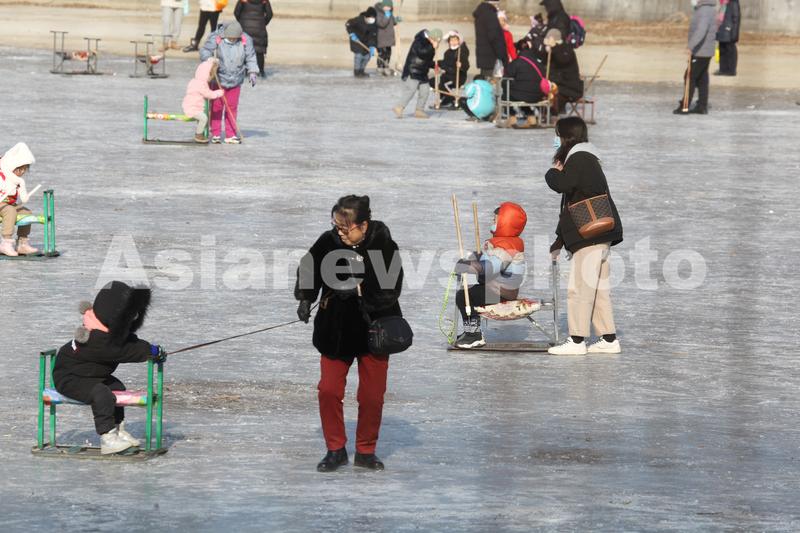 图片说明:2022年1月5日,沈阳市劳动公园人工湖上,市民进行冰上运动。