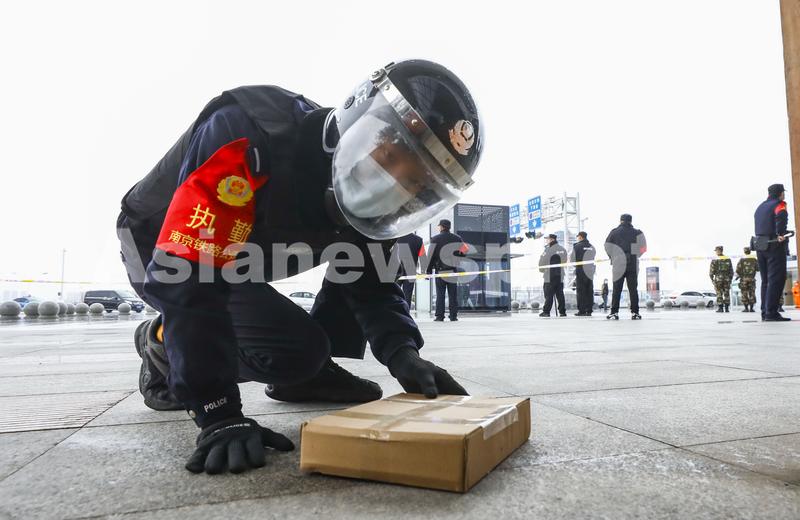 图片说明:2022年1月5日,江苏淮安,高铁站民警处置“爆炸物”。