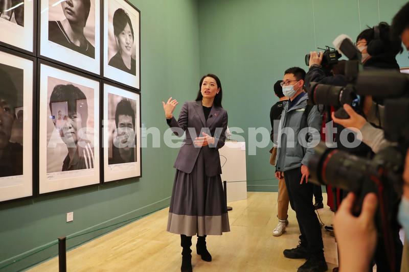 图片说明:1月7日,第28届雅典奥运会女子100米蛙泳冠军罗雪娟(左一)在展览现场。