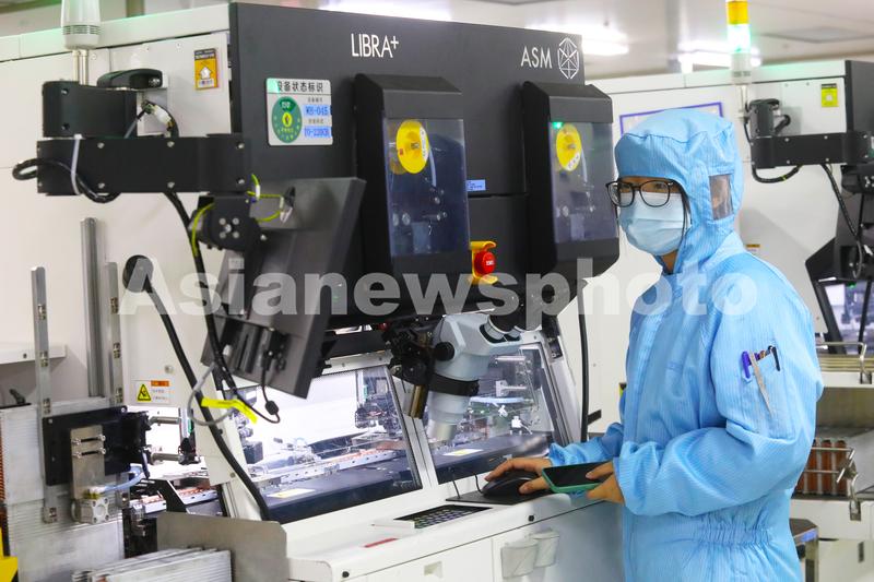 2022年1月6日,重庆梁平区高新区的重庆平伟实业股份有限公司无尘生产车间,工人通过电子显示屏观察电子芯片的生产情况。近年来,梁平区积极抢抓成渝地区双城经济圈建设和承接沿海地区、重庆主城都市区产业转移的机遇,大力实施以大数据智能化为引领的创新驱动发展战略,通过招大引强、科技赋能、补链延链等举措,打造了以设计、制造、封测、应用等产业为主导的集成电路产业集群,带动了当地经济高质量发展。