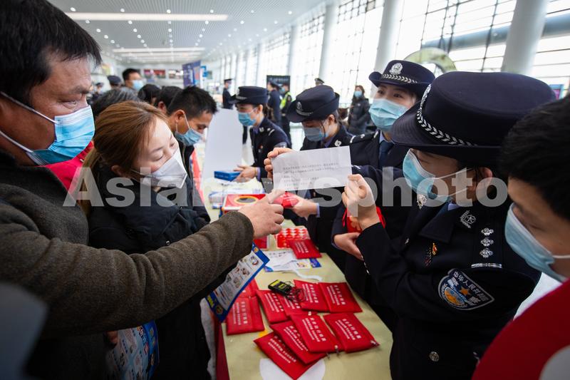 图片说明:1月7日,民警在南京火车站候车大厅进行反诈宣传。