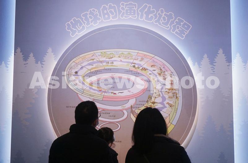 图片说明:2022年1月11日,小观众和家长在浙江自然博物院杭州馆了解地球演化历史。