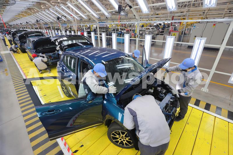 图片说明:2022年1月15日,工作人员正在山西省运城市大运新能源汽车总装车间精准作业。