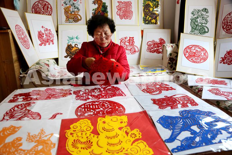 江苏连云港:民间艺人创作百幅“萌虎”剪纸迎新春 查看组图