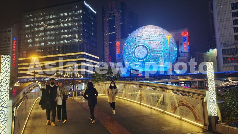 2022年1月24日,上海,徐家汇美罗城水晶球电子屏幕近日升级为全球首个裸眼3D球幕。