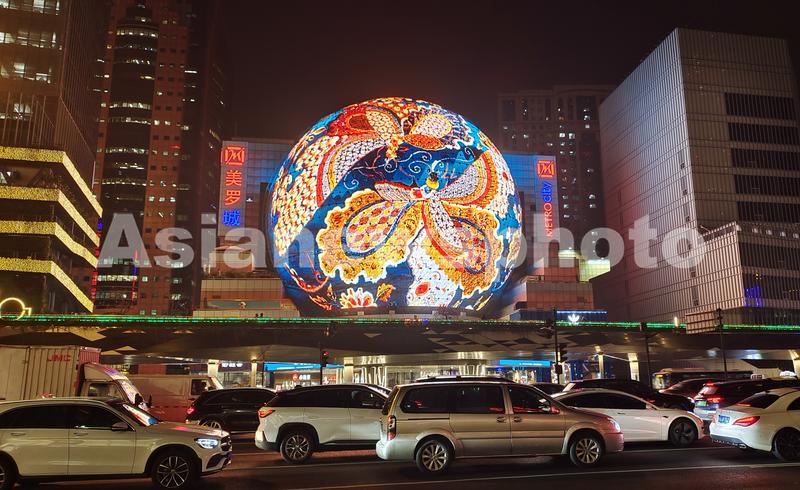 2022年1月24日,上海,徐家汇美罗城水晶球电子屏幕近日升级为全球首个裸眼3D球幕。