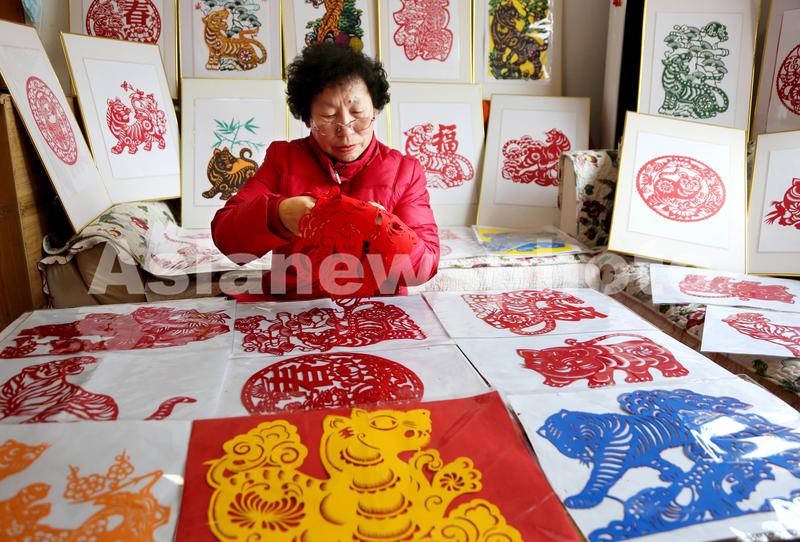 江苏连云港:民间艺人创作百幅“萌虎”剪纸迎新春 查看组图