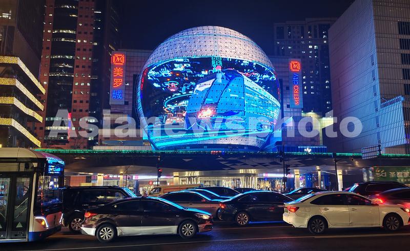 2022年1月24日,上海,承载了徐家汇繁华都市历史记忆的美罗城巨型圆球电子屏幕近日完成了技术升级,由3888块4K高清显示屏替代了原有的灯带颗粒,亮度清晰度都大幅提高,让这颗水晶球成为了全球首个裸眼3D球幕,同时也拉开了“美罗元宇宙”的序幕,为市中心地标商圈夜市增添了动感新看点,促进了夜经济消费。