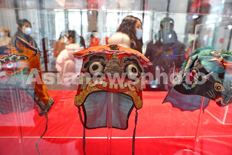 图片说明:2022年1月26日拍摄的“虎年101·事事如意”虎头帽展览。