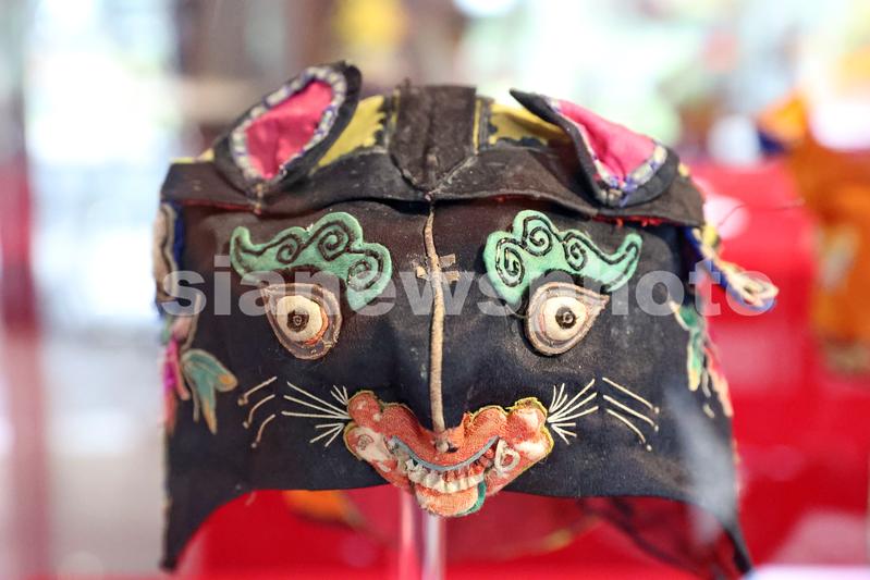 图片说明:2022年1月26日拍摄的“虎年101·事事如意”虎头帽展览。