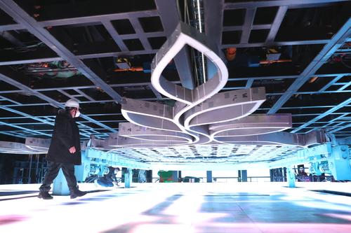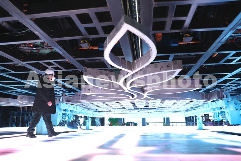 1月28日,工作人员检查“雪花”主火炬台。据了解,主火炬台直径达14.89米,由96块小雪花形态和6块橄榄枝形态的LED双面屏创意组成,采用双面镂空设计,嵌有55万余颗LED灯珠。