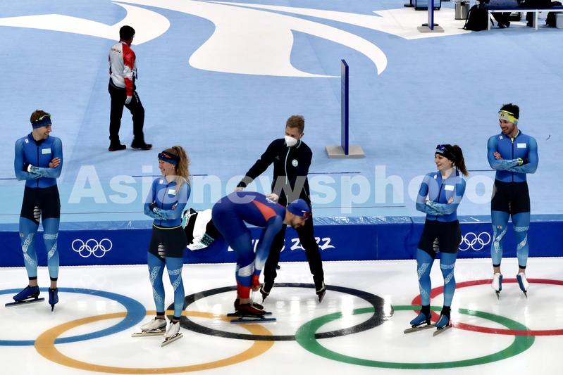 图片说明:1月30日,运动员在国家速滑馆“冰丝带”进行适应场地训练。