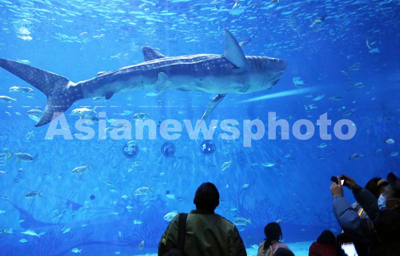 2022年2月4日,上海,由沈阳航天新光集团博士团队出品的全球首条仿生鲸鲨亮相海昌海洋公园鲨鱼馆,与珍奇鱼类共同漫游。