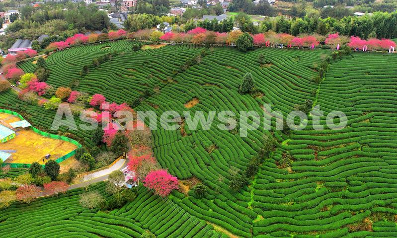 春节期间,漳平市永福镇台湾农民创业园台品茶园樱花,数十万株、四十多个品种的樱花竞相绽放,红色樱花与绿色茶园交相辉映,景色美不胜收,吸引了众多游客前来赏花观景。