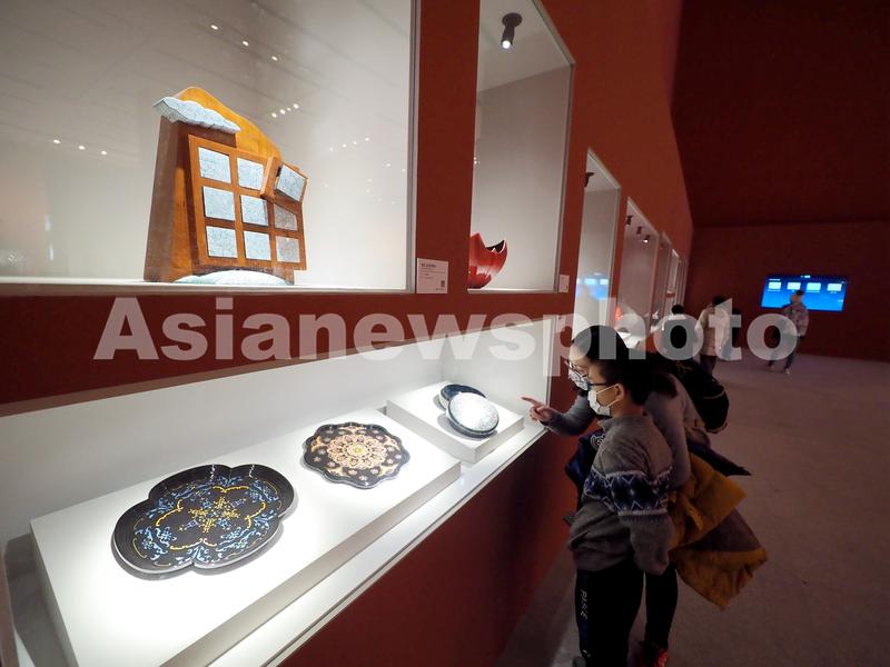 图片说明:2022年2月6日,观众在中国工艺美术馆、中国非物质文化遗产馆内参观“中华瑰宝——中国非物质文化遗产和工艺美术展”。