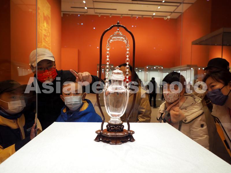 图片说明:2022年2月6日,观众在中国工艺美术馆、中国非物质文化遗产馆内参观“中华瑰宝——中国非物质文化遗产和工艺美术展”。
