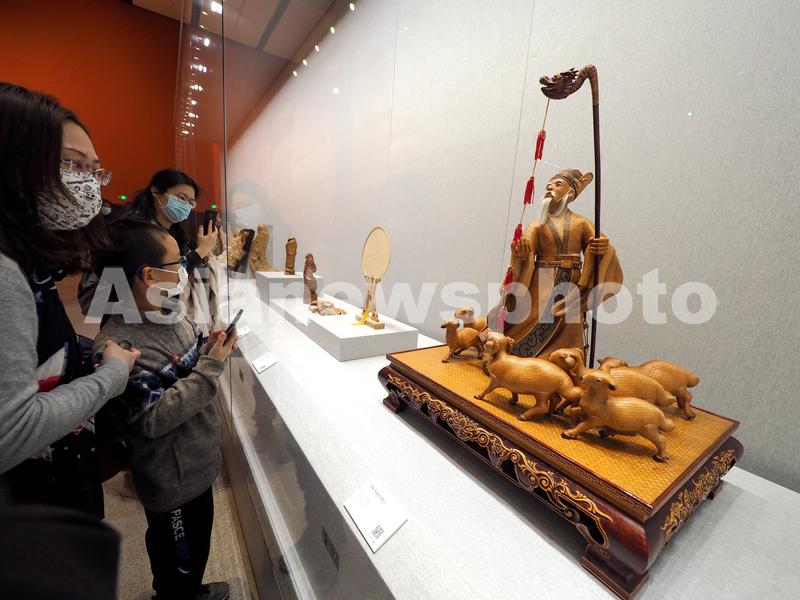 图片说明:2022年2月6日,观众在中国工艺美术馆、中国非物质文化遗产馆内参观“中华瑰宝——中国非物质文化遗产和工艺美术展”。