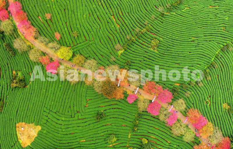 春节期间,漳平市永福镇台湾农民创业园台品茶园樱花,数十万株、四十多个品种的樱花竞相绽放,红色樱花与绿色茶园交相辉映,景色美不胜收,吸引了众多游客前来赏花观景。