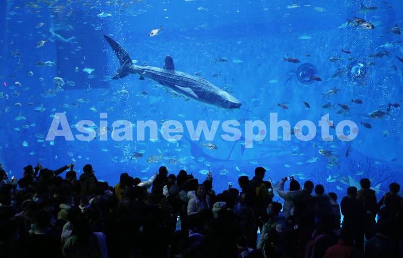 2022年2月4日,上海,由沈阳航天新光集团博士团队出品的全球首条仿生鲸鲨亮相海昌海洋公园鲨鱼馆,与珍奇鱼类共同漫游。