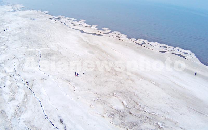 图片说明:2022年2月11日,辽宁省大连市区气温达7℃左右,甘井子区夏家河海滨浴场冰封千余米的海冰剩下距离岸边不足200米。