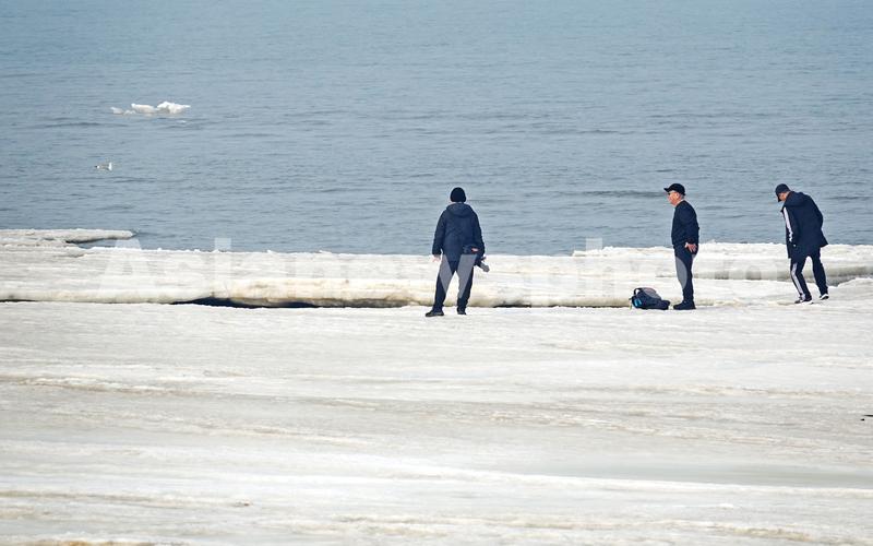 图片说明:2022年2月11日,游客在辽宁省大连市甘井子区夏家河海滨浴场踏冰赏景、拍照。