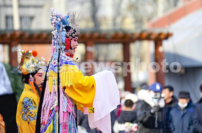 2022年2月14日,内蒙古呼和浩特市赛罕区举行“2022年春节元宵节戏曲大联欢”活动,来自该区文化馆的演员为观众表演传统晋剧《打金枝》以及晋剧经典唱段,欢喜迎接虎年元宵节。