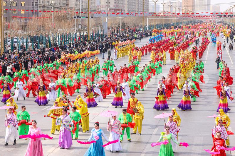 2022年2月13日,随着元宵节的临近,新疆库车市举行“社火闹新春·热闹过大年”大型民俗社火展演活动,来自全市8个市直单位和18个乡镇(街道)组成26个社火队带来舞龙、舞狮、碟子舞等丰富多彩的非遗和民俗节目,极大地丰富了当地群众的节日文化生活,大家一起热热闹闹、欢天喜地迎接元宵佳节的到来。