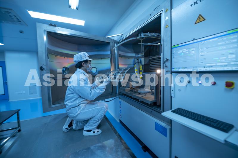 图片说明:2022年2月15日,江苏欧陆智造镜片有限公司的技术人员正在无尘车间制作镜片。