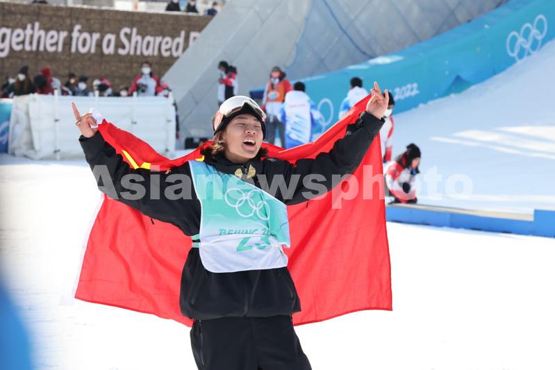 2月15日,中国选手苏翊鸣在比赛后庆祝。