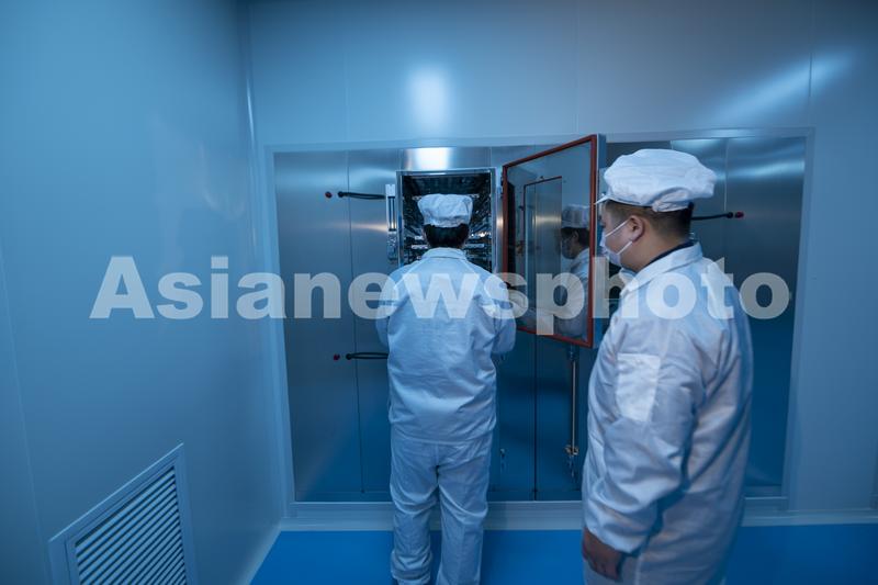 图片说明:2022年2月15日,江苏欧陆智造镜片有限公司的技术人员正在无尘车间制作镜片。