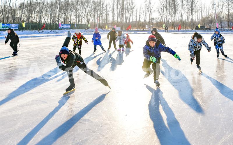 2022年2月6日,黑龙江省双鸭山市友谊县友谊镇,滑冰场内热闹非凡,孩子们在冰面上追逐嬉戏,尽情享受冰雪运动的乐趣。