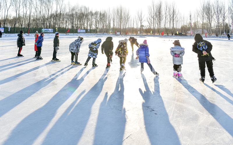 2022年2月6日,黑龙江省双鸭山市友谊县友谊镇,滑冰场内热闹非凡,孩子们在冰面上追逐嬉戏,尽情享受冰雪运动的乐趣。