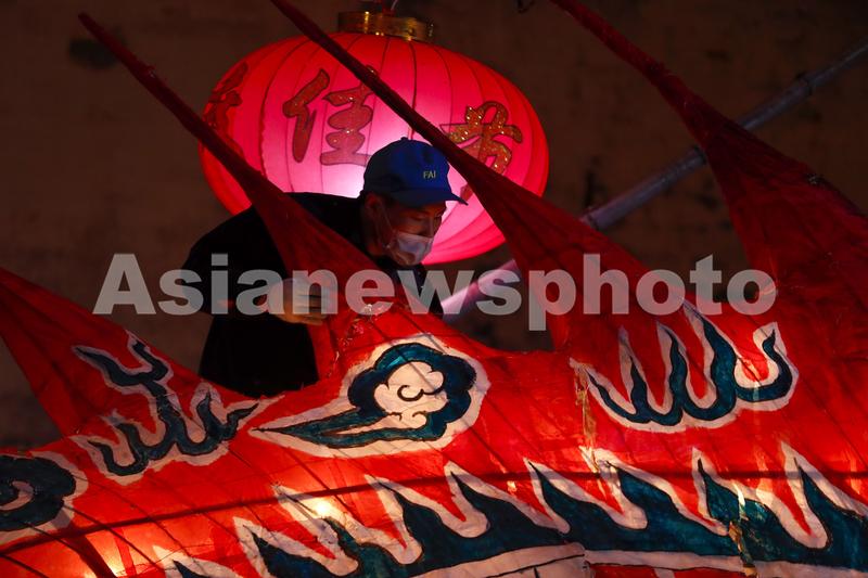 图片说明:2022年2月16日,在安徽省黄山市,汪满田鱼灯表演队伍正在村中嬉游祈福。