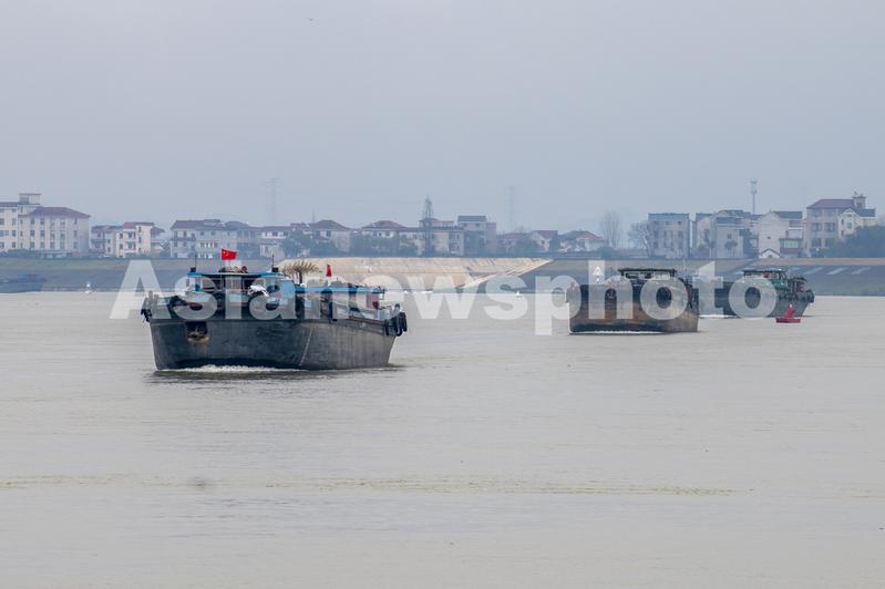2022年2月19日,浙江省钱塘江中上游衢江航道新年恢复通航首日,一排千吨货船排起长队,驶向衢江上游载货。