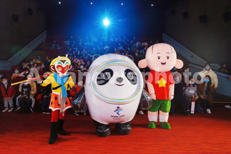 2022年2月18日,上海,北京冬奥进入尾声但熊猫冰墩墩热度未减,与美影厂孙悟空、大耳朵图图等动漫IP全明星合作的奥运历史首部吉祥物动画电影《我们的冬奥》在申城首映,“网红”到场加油引众多粉丝追星。