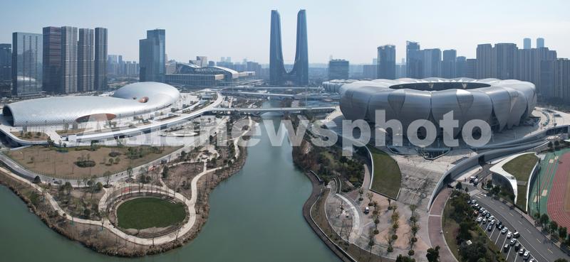 2022年2月21日,从空中俯瞰2022亚运会主会场杭州奥林匹克体育中心。